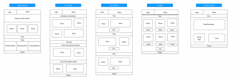 Pour un projet d’école, j’ai proposé la refonte du site d’un camping situé en Normandie. J’ai évalué le site actuel et fait des propositions d’amélioration. J’ai ensuite réalisé des maquettes mobiles et desktop pour rendre l’interface plus moderne et accessible.