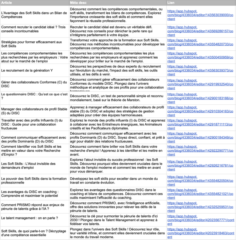 J’ai réalisé un cocon sémantique pour optimiser le référencement web du site prismo.io. Pour ce faire, j’ai fait une recherche de mots clés sur google search consol puis j’ai rédigé 17 articles qui on ensuite été publiés sur le blog.