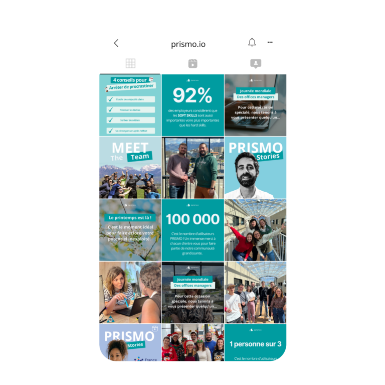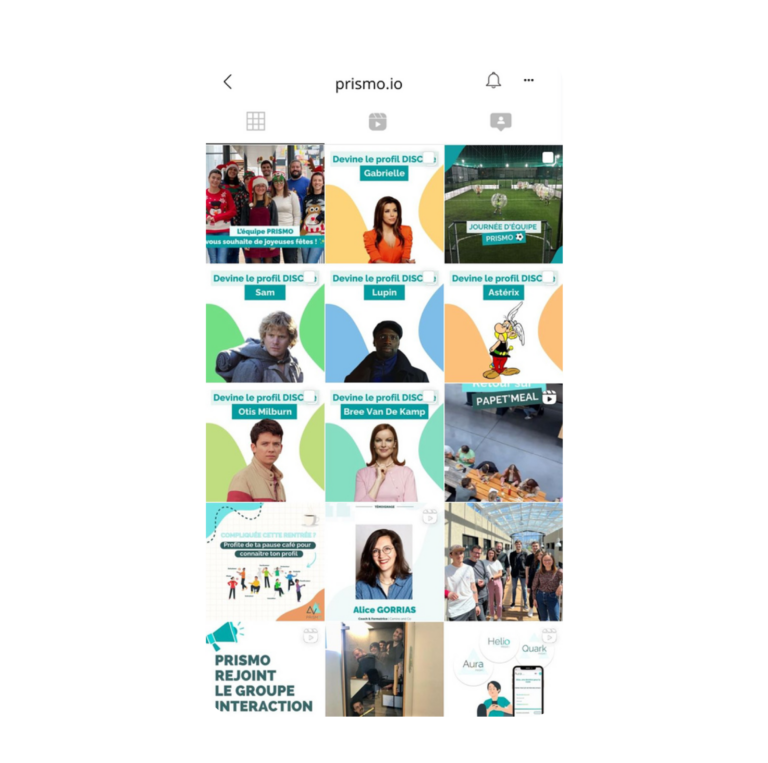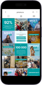J’ai modernisé le compte Instagram de Prismo.io en créant des visuels alignés avec la charte graphique pour un rendu plus professionnel. J’ai également augmenté la fréquence de publication et mis en place un calendrier éditorial pour une meilleure organisation et cohérence.